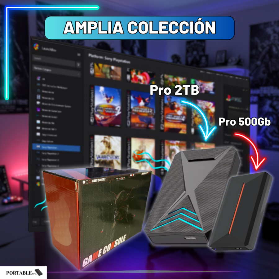 - Pro 500GB + 2 Controls + Connection Cable.